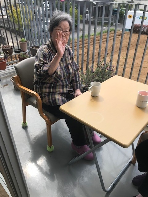 テラスに出て外気浴をされながらお茶を飲まれている様子をご紹介します(^^)/