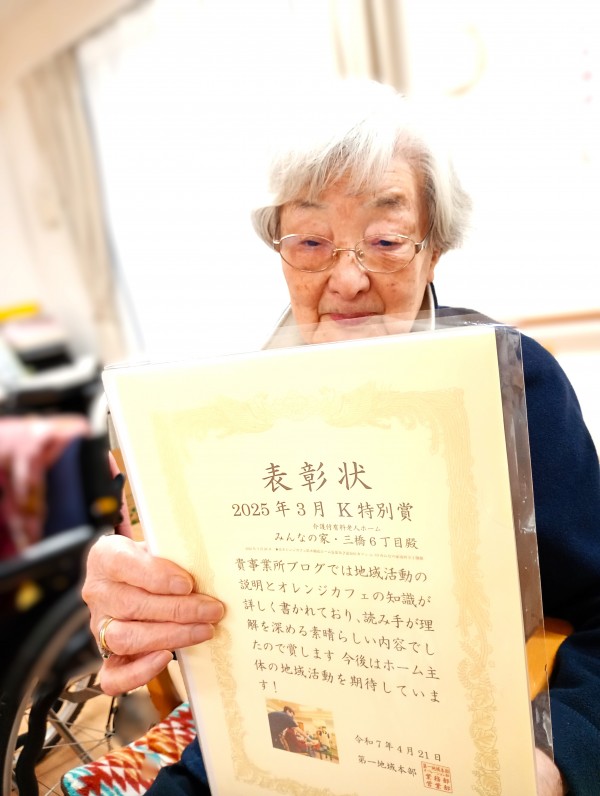 ★☆三橋6丁目がK特別賞の表彰状を授与♪第一地域本部 オペレーション部--業務部-営業部2025年3月‼2025年令和7年✨ 『みんなの家 三橋6丁目 介護ブログ』☆★