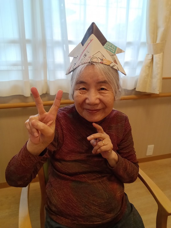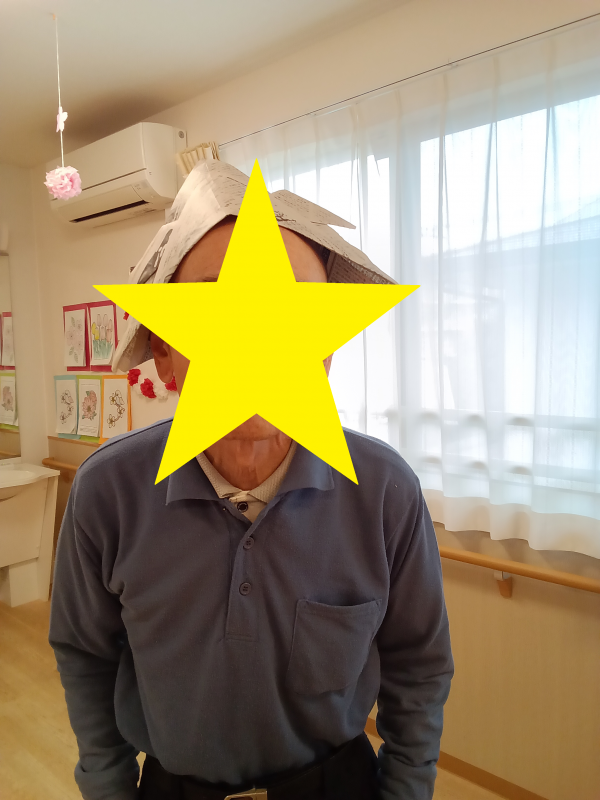 新聞紙で兜を作り写真を撮りました(*^^*)