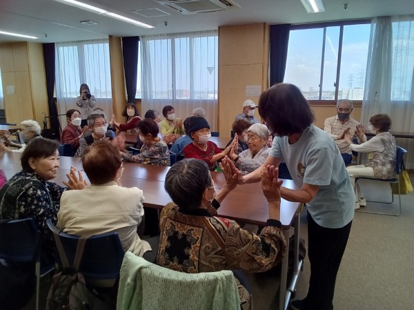 お食事の後は、みんなでレクリエーションの時間です。今回は宮﨑先生による歌を取り入れた脳トレ。もうじき『母の日ですね』というところから、森昌子さんの『おかあさん』がテーマです。