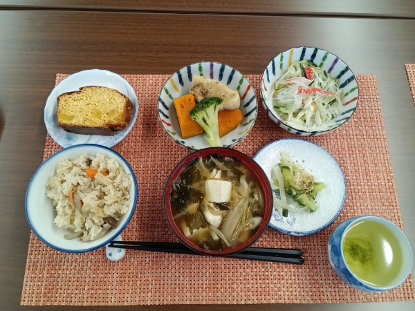 具沢山のお味噌汁を前に「わぁ、これだけでも十分なご飯になるねぇ。」という声がきかれ、さくらんぼさんの方から「参加者さんからのリクエストなんですよ。家だと、具沢山汁にするのは大変だし、ここで食べる味噌汁が美味しいって。」と、参加者さんの声に応えたメニューが提供されていました・・・嬉しいことですね。