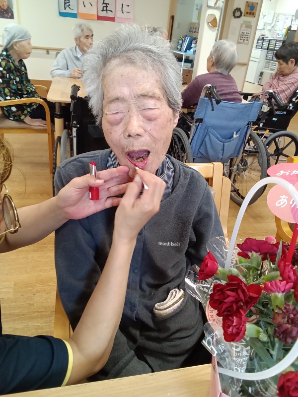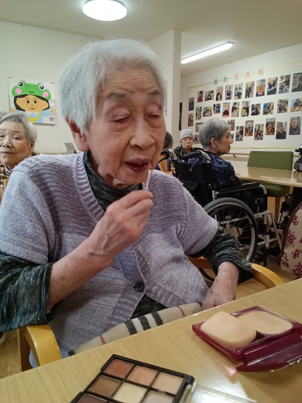 ご利用者様ご本人に久々のメイクをして頂きます。