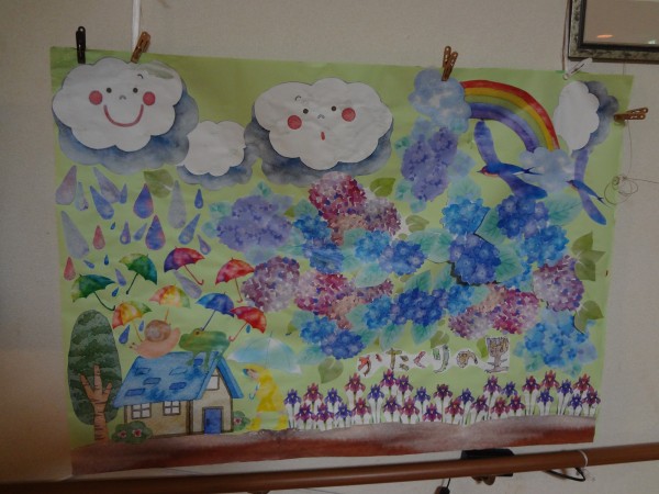 そんな季節の変化に合わせて、壁画を桜から紫陽花をモチーフにしたものに変更しました(^^)/
