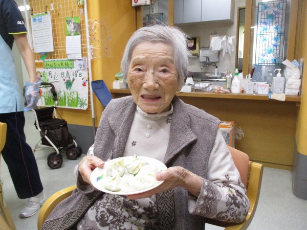 先日、母の日のお祝いレクとして入居者様たちと一緒に餃子を作りました!