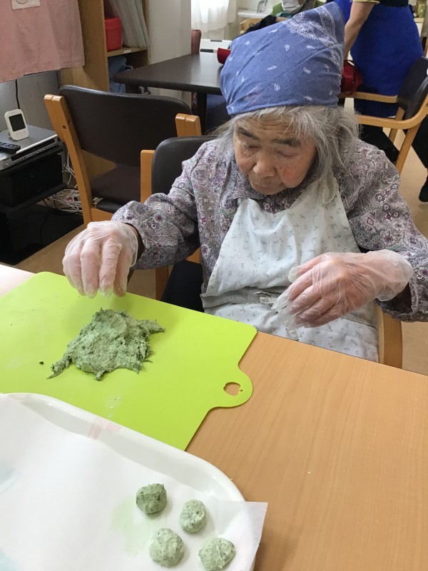 よもぎのいい匂いがわずかにしてきて、リラックスされながら作られていました。
