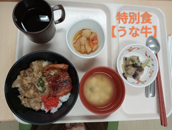 本日は皆さまお楽しみの特別食「うな牛」の日でした★