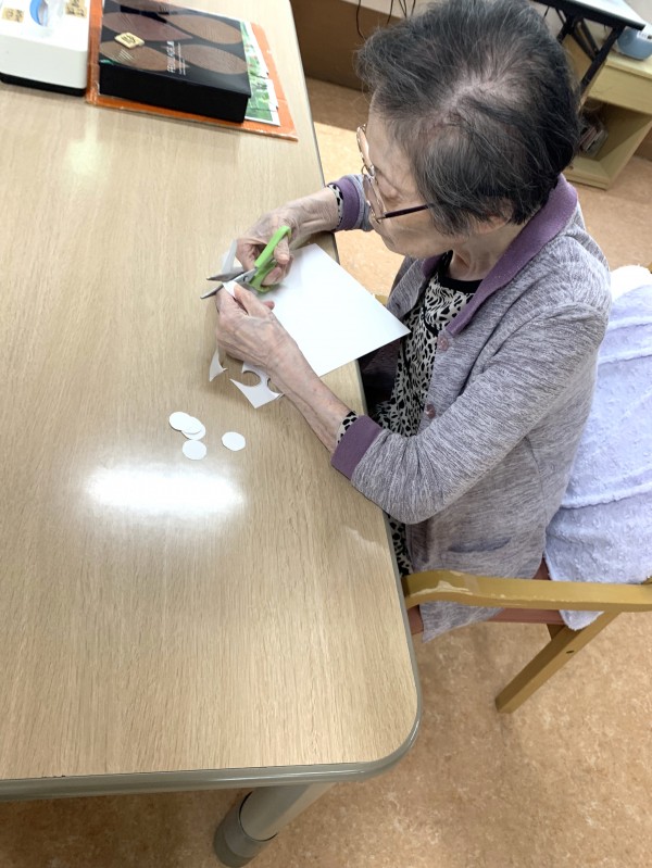 まず白紙を切り取って目玉を作っていただきます。