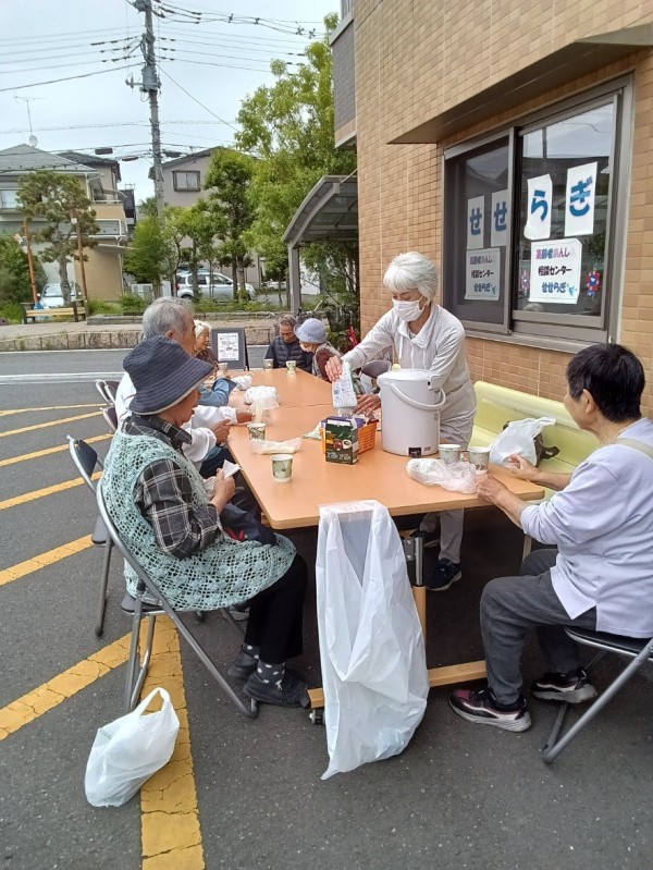 「外で飲むコーヒーは格別だね」や「夫がDSに行っているのでつかの間の休息」とゆっくりした雰囲気で皆さま同志交流をとっておりました。