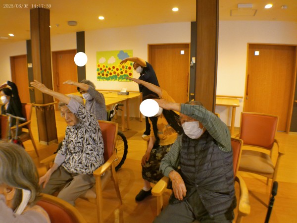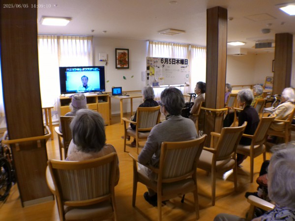 こんにちは(❁´◡`❁)。介護付き有料老人ホームアミカの郷津田沼スッタフブログです╰(*°▽°*)╯いつもご覧いただきありがとうございます。6月5日に岡田先生による毎日ノーア3「腸活プログラム」。快便!!目指してみんなで頑張ろう!(^^)!たまたまTV画面が見にくいのでカーテンを閉め、電気を半分消して、薄暗くしてみたら、癒し効果なのか、なんとなくいい感じです(*^^*) 1Fの利用者様達も楽しみにされており、たくさんの人が参加してくれています。