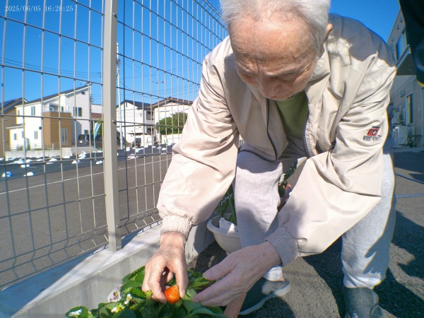 こんにちは(❁´◡`❁)。介護付き有料老人ホームアミカの郷津田沼スッタフブログです╰(*°▽°*)╯いつもご覧いただきありがとうございます。ゴールデンウイークに植えたイチゴが実を付けました。早速、苺狩りをしてもらいました。