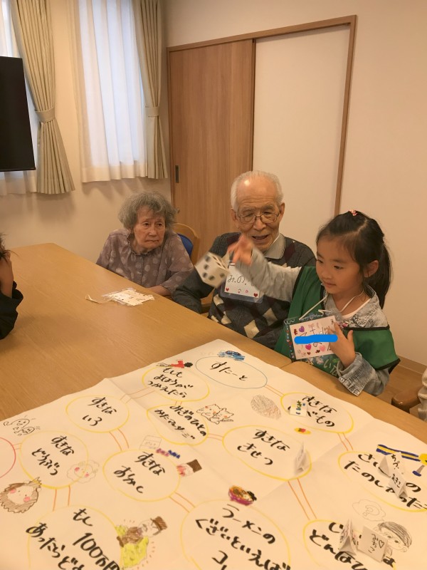 すごろくのコマを児童のみんなが名前を聞いて書いてくださいました!みんな字が上手!それにやさしいお声掛けもできていてうれしい微笑ましい光景です。