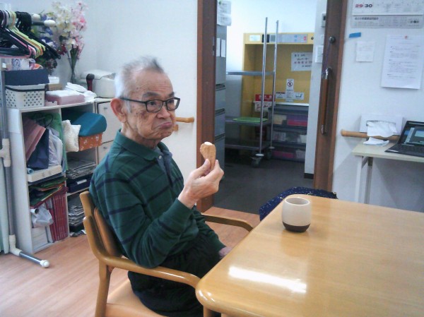 おやつにアイスクリームを美味しく召し上がりました。「誕生日会? 忘れてたわ?」と仰られていました(^0_0^)