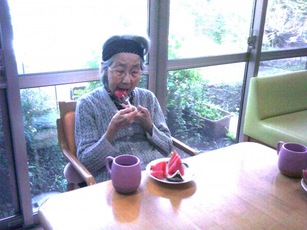 今日はご家族様からの差し入れ(スイカ)がありました。 おやつに召し上がられました。 そのご様子をお知らせいたします!!