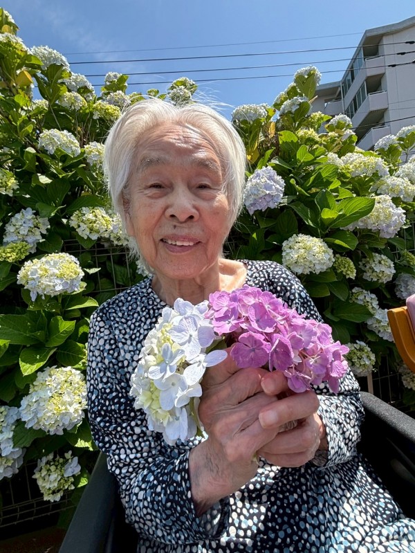 皆さん、紫陽花に囲まれ、いい笑顔ですね。