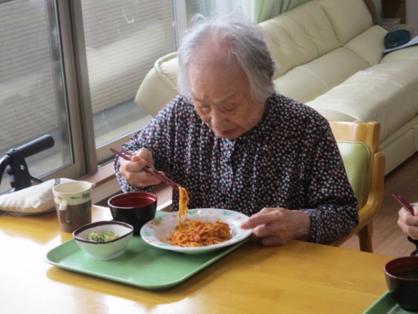 今日は2階で昼食会を行いました。 召し上がられているご様子をお知らせいたします!!