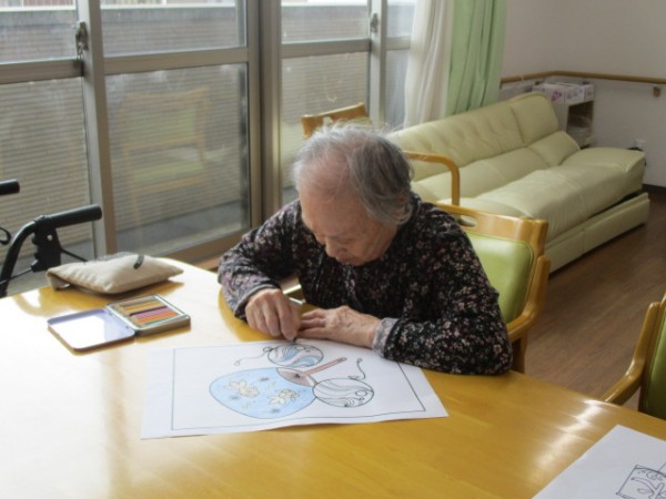 今日は2階で塗り絵を行いました。 そのご様子をお知らせいたします!!