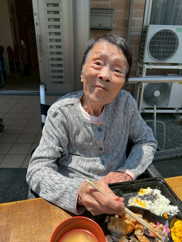 いい天気の中の外での食事、笑顔が輝いて見えますね(笑)
