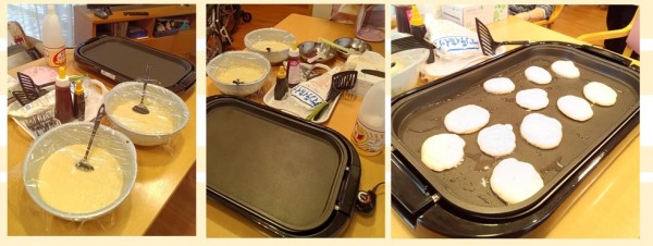 ホットプレートを使って 皆様でパンケーキを作りますヾ(*´∀`*)ノ