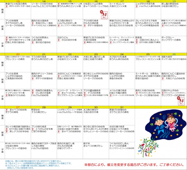 7月と言えば七夕ですね☆来月の行事食はどんな美味しいものが出てくるのでしょうか☆