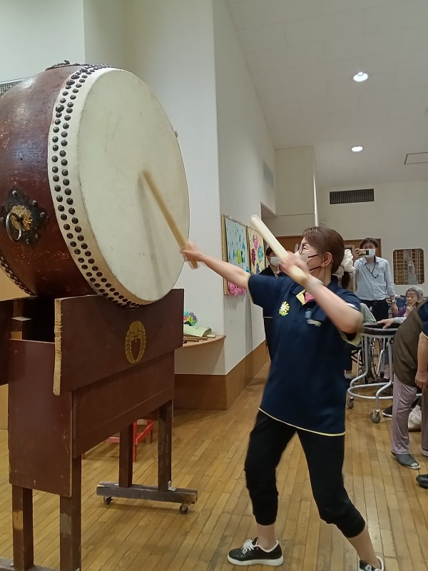 天候が悪い中地域の方々も参加頂き、それぞれに太鼓を叩いていただいたり