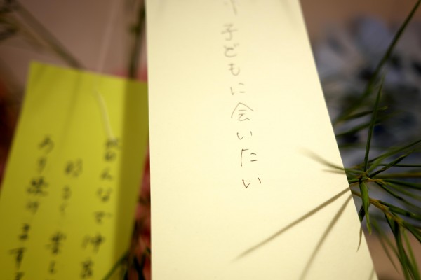七夕に向けて短冊を書いてもらっています。
