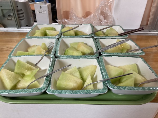 この日のおやつは茹で枝豆にメロン。生ハムメロンではないですがありそうな組み合わせ。それにしても豪華です!!