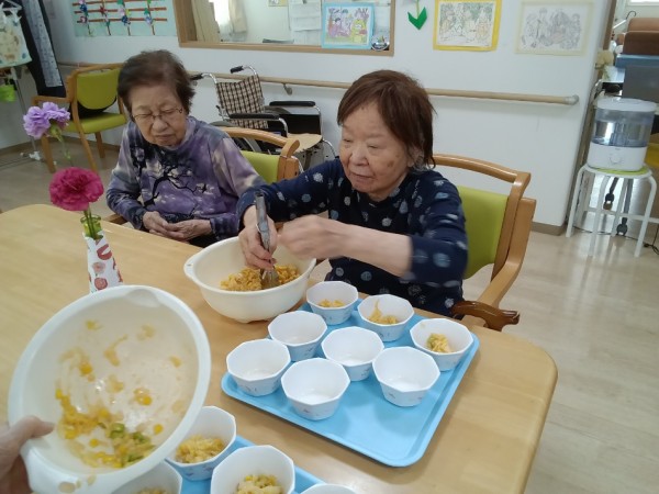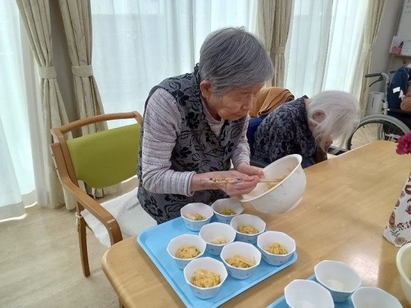 昼食前の盛り付けタイム☺ 協力しながらてきぱきと…