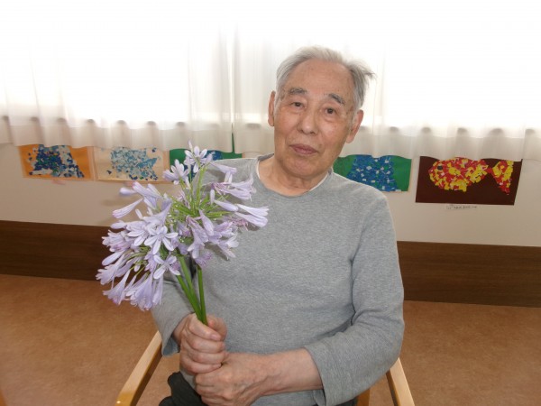 ホームに戻ってから、近隣の方が下さったアガパンサスの花で