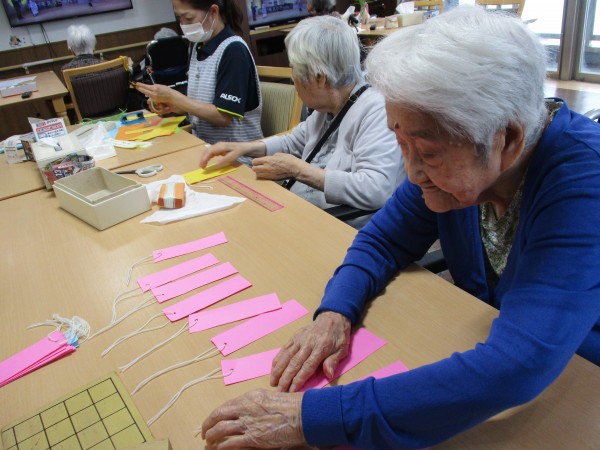 短冊を飾るための穴開けや、糸を通す作業も手伝って頂きました!