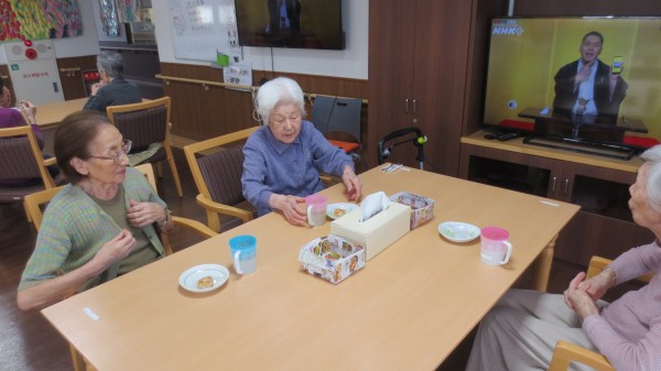 体操の後はおやつの時間でした。しっかり水分補給をしつつ、おやつを食べながらゆっくり過ごしました(^^♪