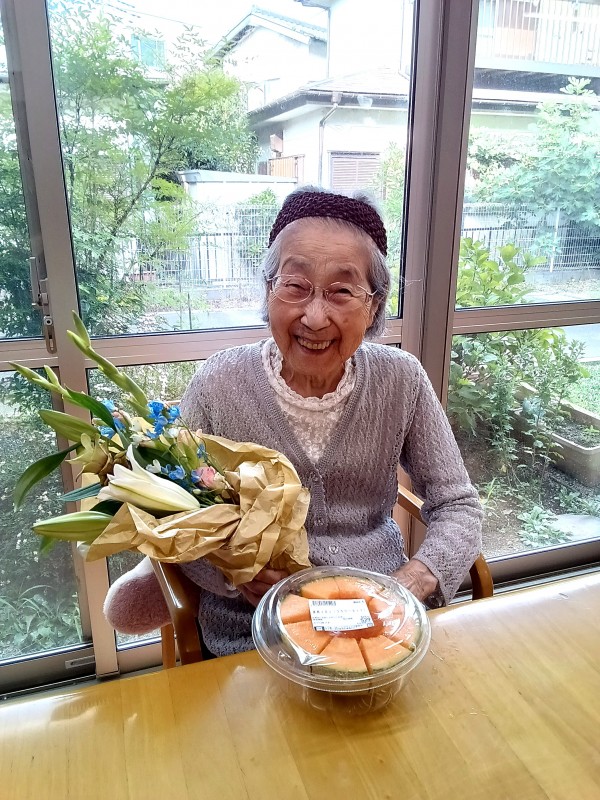 まあ~綺麗なお花だこと? 美味しいメロンもあるの? 大喜びでした(^0_0^) おやつに召し上がられました(*^_^*)