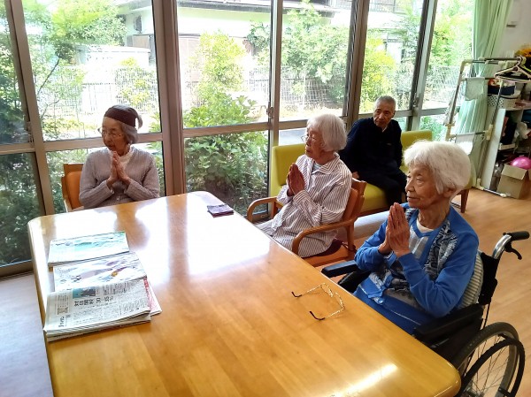 リモート体操:口腔ヨガプログラムを行っています( ^ω^)・・・ 静かに手を動かされ体操に参加されております(*^_^*)