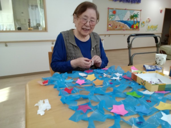 『もうすぐ七夕だね』と言いながら行う制作レクも認知症ケアのひとつ☺