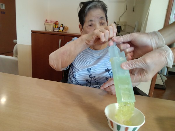 今日は七夕イベントとして皆様に天の川をイメージしておやつを作ってもらいましたので