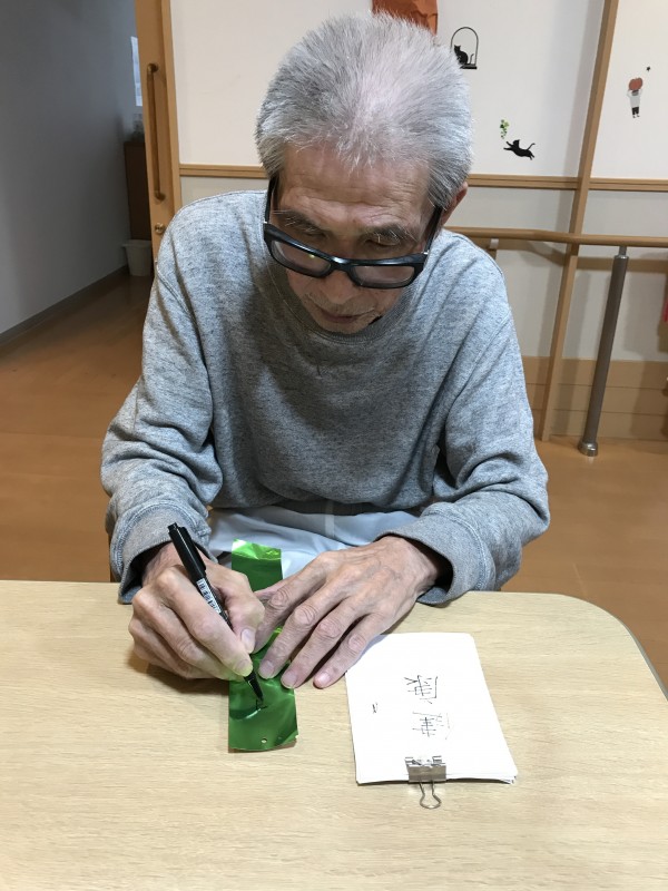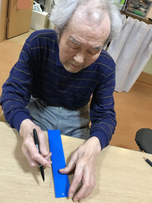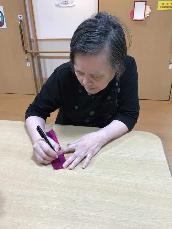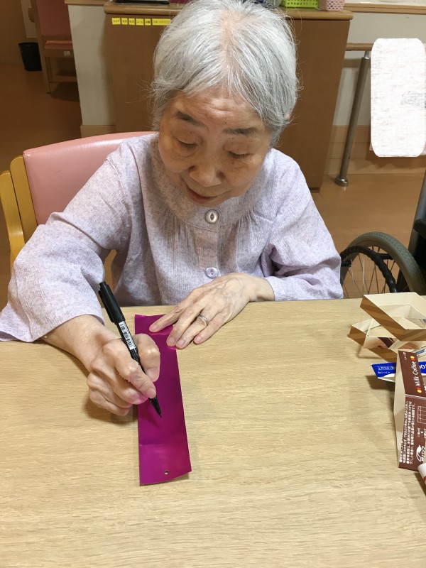 1階利用者様、七夕短冊に願いをこめ込めています(^_-)-☆