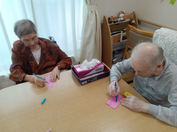 お話し合いをされてたり、スタッフと一緒に考えて書いたり・・・♪