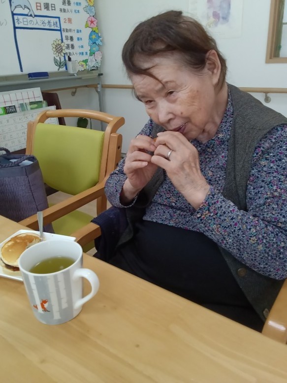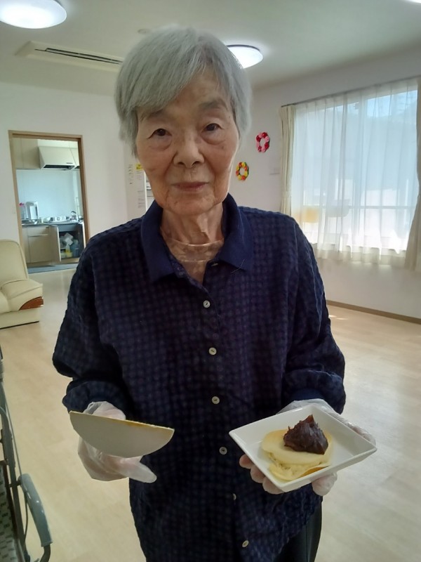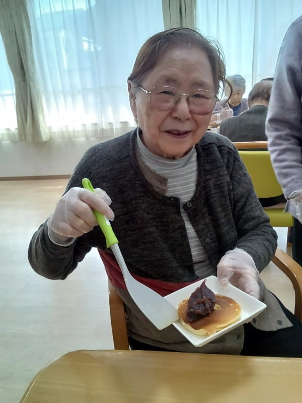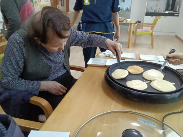 ご入居者様おふたりが、交互に混ぜて生地を作ってくださいました。