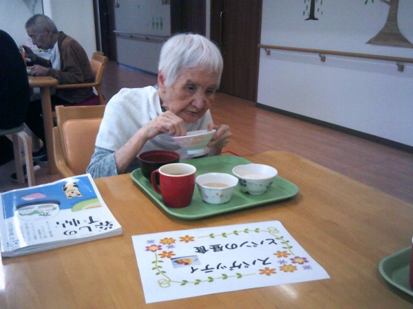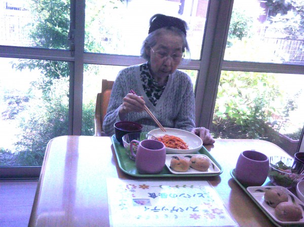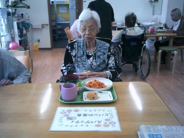 今日は1階で パンとスパゲッティの昼食を作りました(^0_0^) 召し上がられているご様子をお知らせいたします!