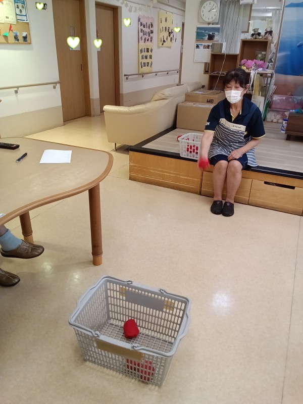 ご利用者様、職員もかつてない集中力で籠に目掛けて