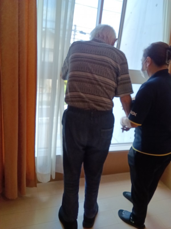 廊下を歩いて運動しましょう!っと職員と手をつなぎ一歩一歩ゆっくりと歩かれました(*'▽')
