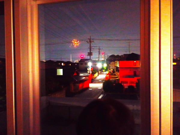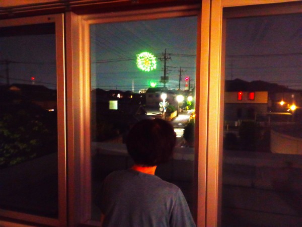大きな花火の音に反応して、窓から外をのぞく