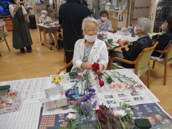 講師の方から「花の茎は結構短く切ってもらって大丈夫です」