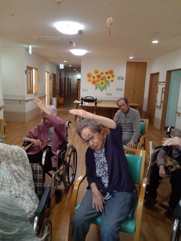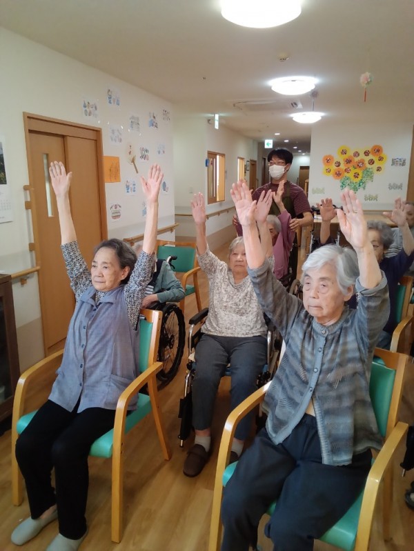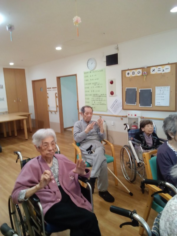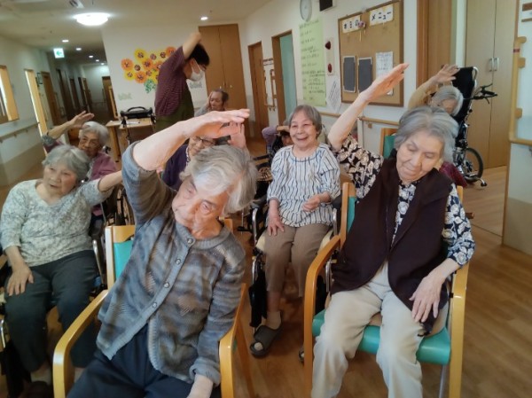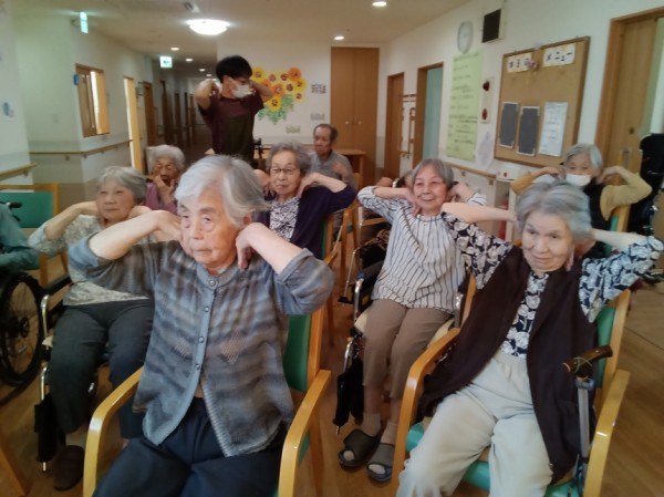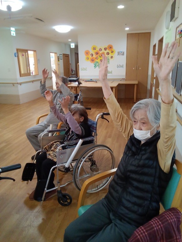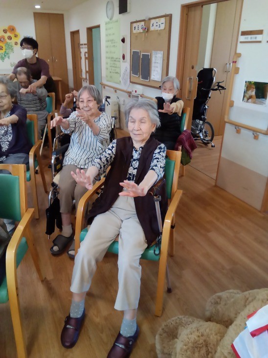 こんにちは、グループホームみんなの家川崎新百合ヶ丘の介護ブログです。今回は、リモートでのいきいきリズム体操のご様子をお伝えさせて頂きます。モニターで沢山の施設の皆さんとつながって、ご一緒に体操をされました。画面にご自分の姿が映し出されると皆さん少し緊張されておられるようです。