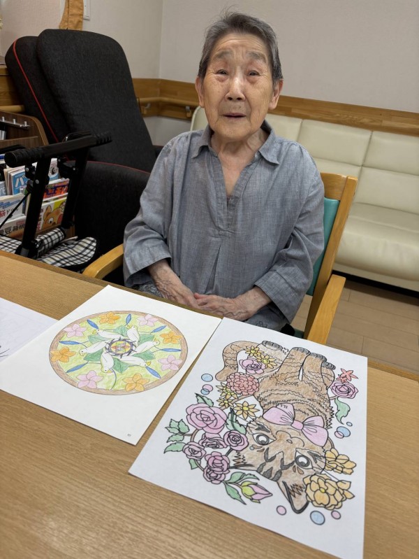 とても優しい色合いで塗って下さりましたᐠ( ᐢωᐢ )ᐟ塗り絵をお渡しした際には「可愛い!どれも良いわね!」と喜んで下さりましたヽ(✿❛◡❛)ノ