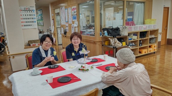 職員もご利用者様に混ざって楽しくお茶会です♪