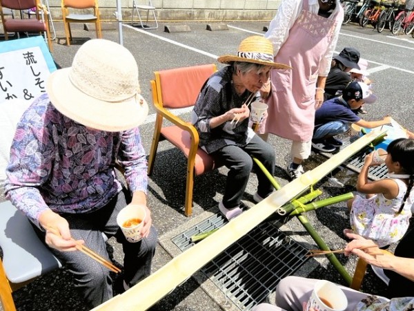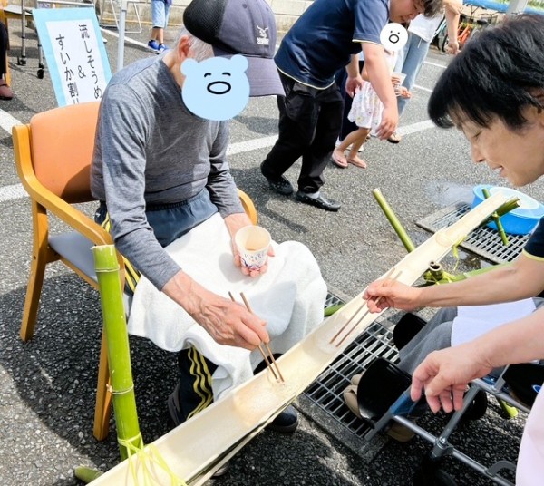 夏の風物詩『流しそうめん&すいか割り』暑い中でのイベントで