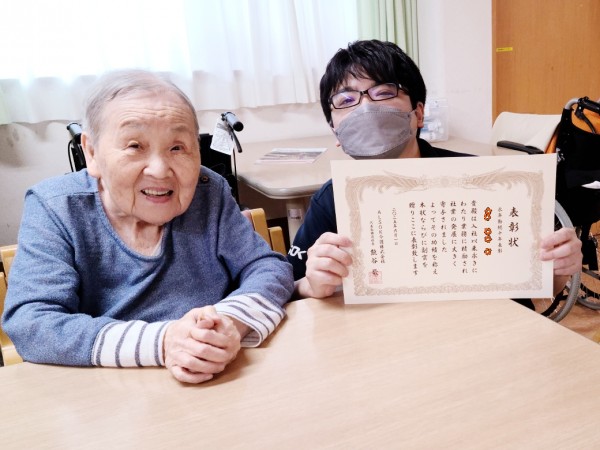 「10年勤めたから表彰されたんですよ~」とY様に伝えると「すごいね~!」とニッコリ(*´ω`*)