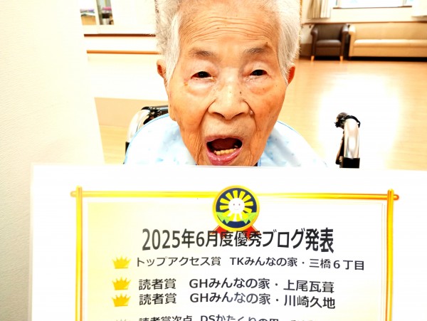 ★☆三橋6丁目のブログTopAccess『トップアクセス賞 』表彰‼6月度優秀ブログ発表‼2025年令和7年✨ 『みんなの家 三橋6丁目 介護ブログ』☆★