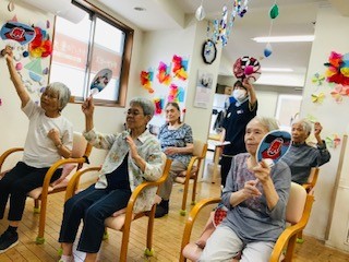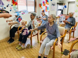 続いては、先日皆さんで作った、素敵なうちわを使って、、、、