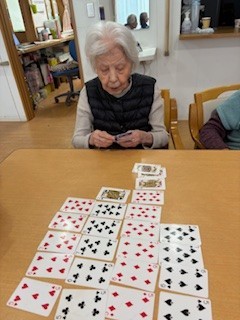お昼ごはん後に皆さんで7並べや、ババ抜きをしているところを発見!